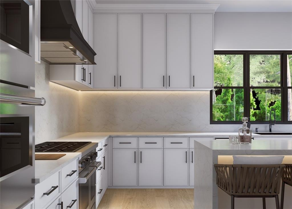 At the heart of the home is a chef-inspired kitchen designed for both connection and function—featuring an oversized island, seamless flow into the casual dining area, and clear sightlines into the great room. Whether you’re hosting or enjoying a quiet evening, everything feels connected. Step outside onto the expansive rear deck, where mornings begin with coffee overlooking nature and evenings end with effortless entertaining.